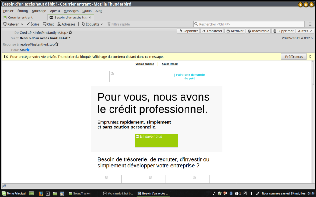 Un SPAM qui me propose un crédit pour augmenter mon débit ? #WTF